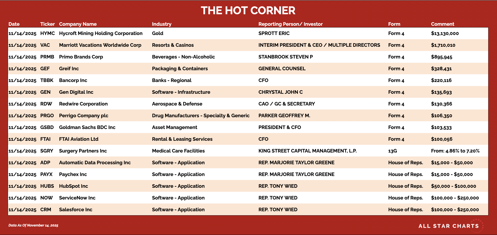 Here’s The Hot Corner, with data from November 14, 2025: