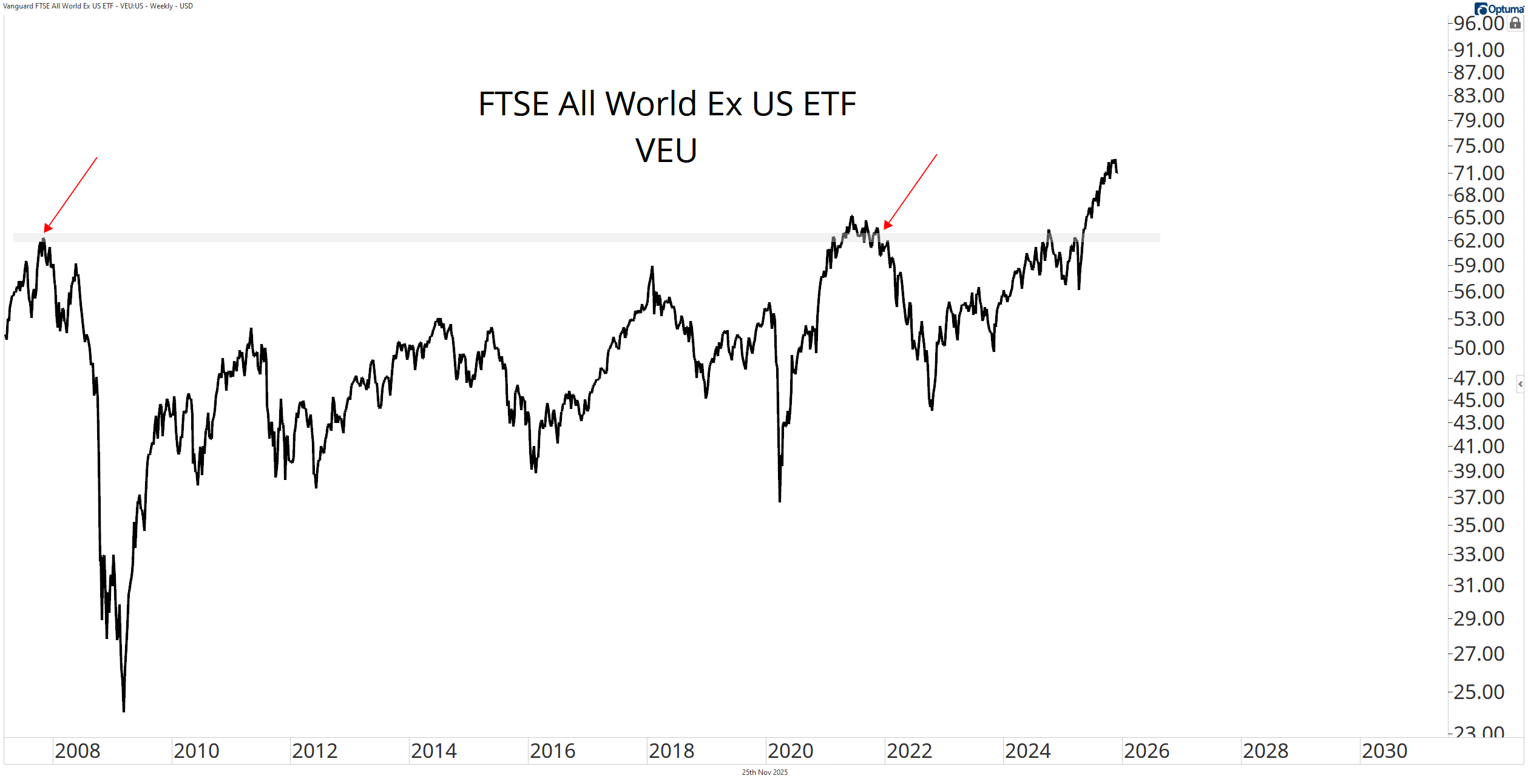 The Vanguard FTSE All-World ex-US ETF $VEU, which tracks markets outside the US, has just broken out of a long-term base to all-time highs.