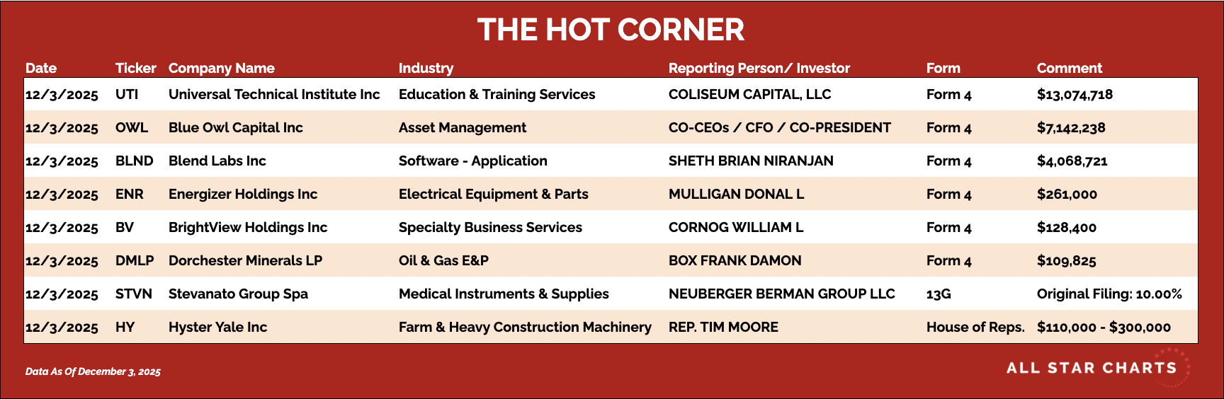 Hereβs The Hot Corner, with data from December 3, 2025: