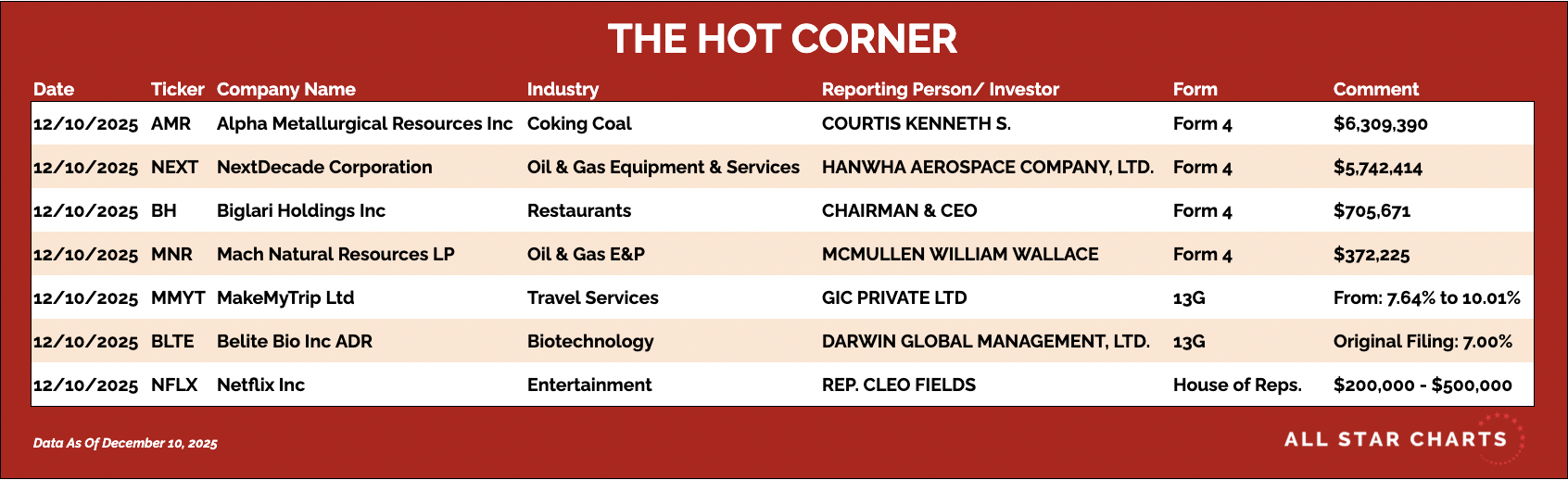Hereβs The Hot Corner, with data from December 10, 2025: