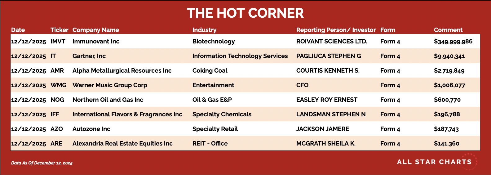 Hereβs The Hot Corner, with data from December 12, 2025: