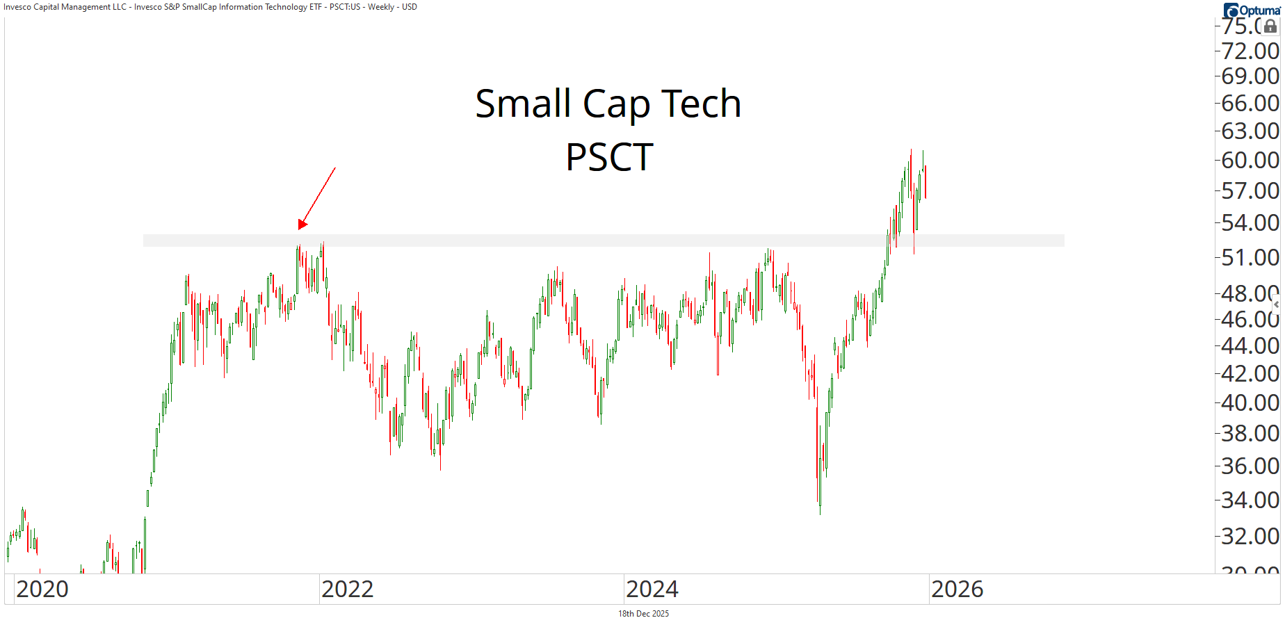 Leading the group is Small-Cap Technology $PSCT, which has just broken out of a major long-term base. The upside potential from here is meaningful.