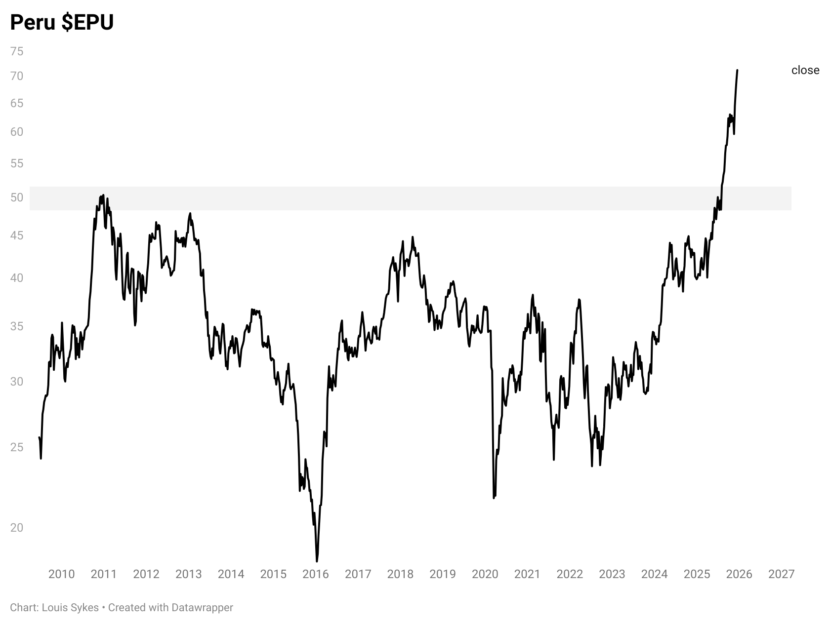 EPU is trading at fresh all-time highs, supported by strong performance from cyclical groups like metals and mining.