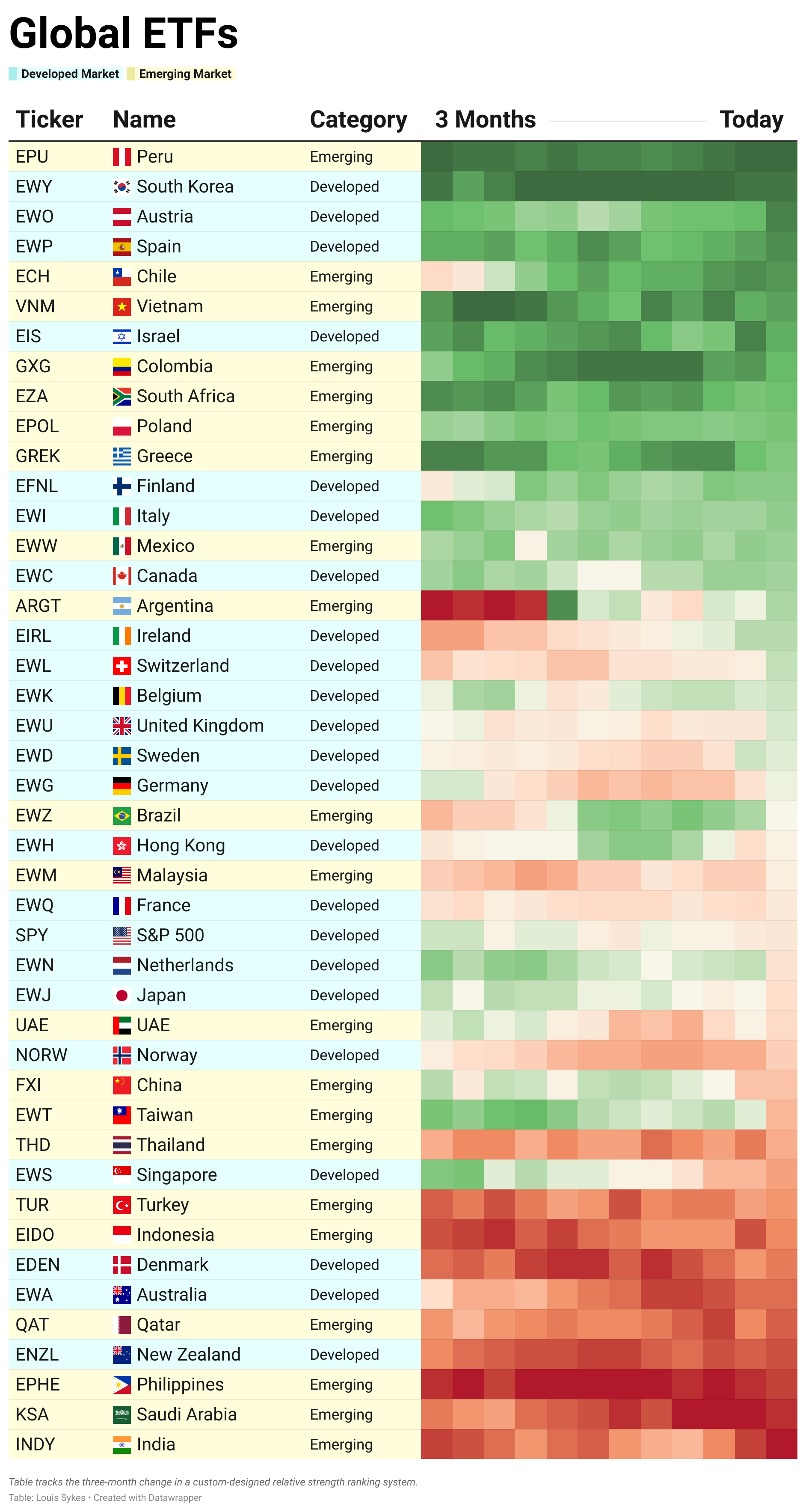 Last week in our global column, we highlighted Peru’s ETF, $EPU. The breakout has been so compelling that we’re bringing it back to the forefront again this week.