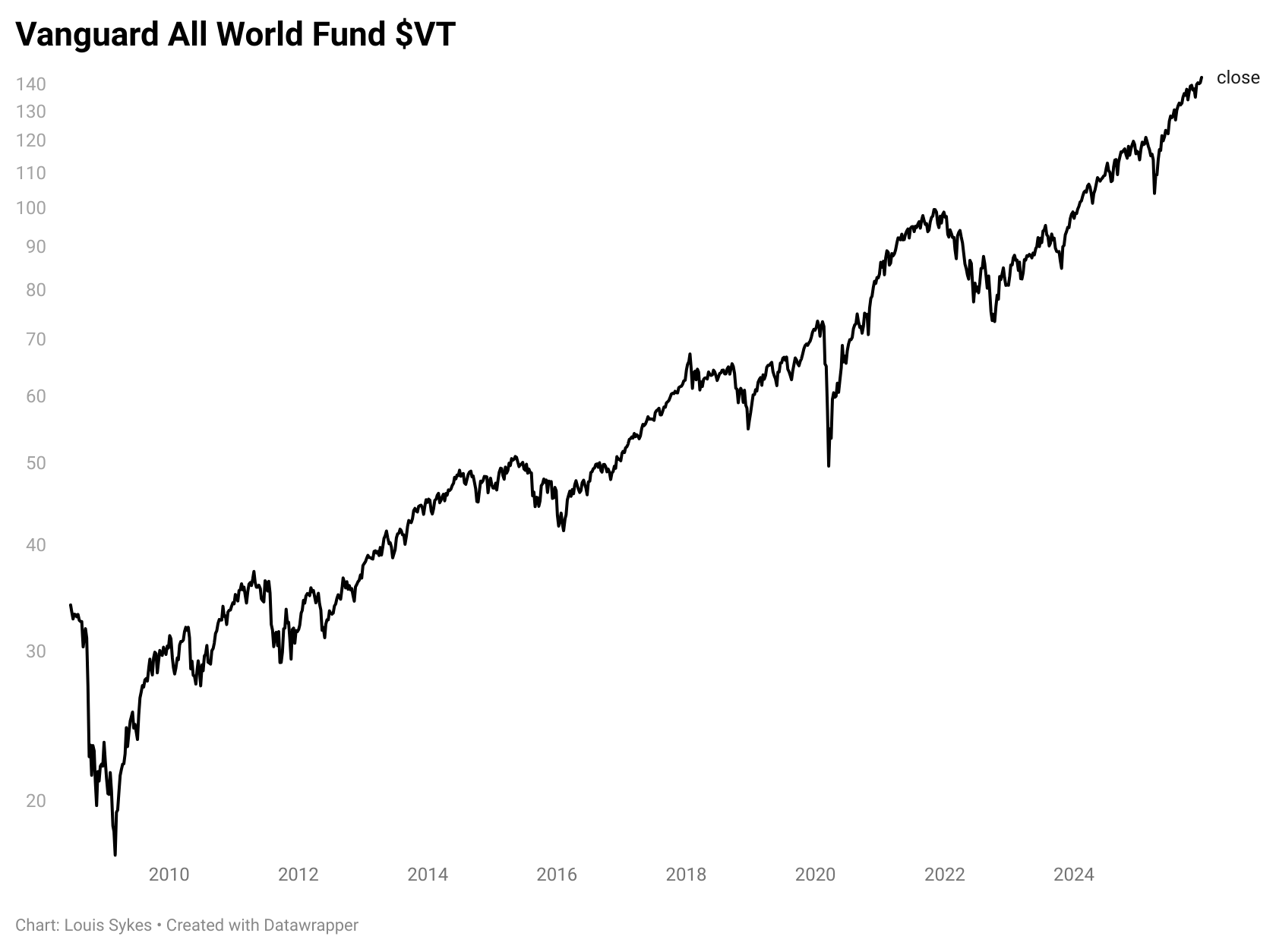 The broadest global ETF ever created - Vanguard's Total World ETF $VT that holds over 9,000 stocks around the world - is closing the year at all time highs.