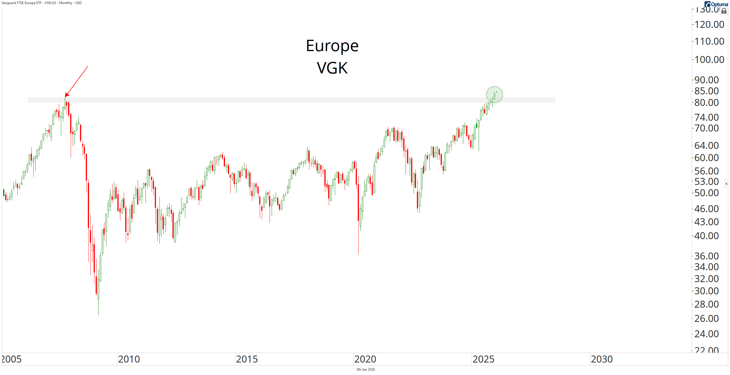 Just last week, Europe $VGK eclipsed its pre-financial crisis highs and is trading at all time highs for the first time in nearly two decades!