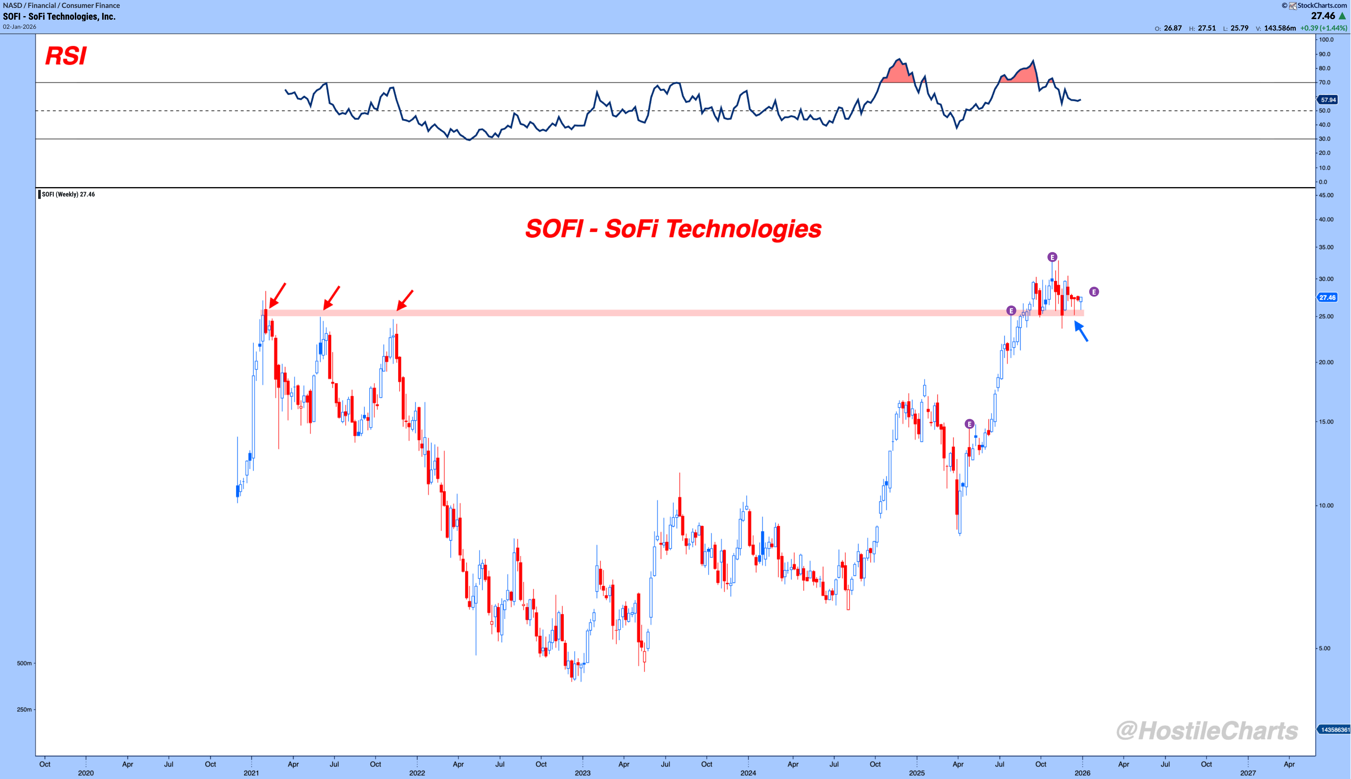 SOFI continues to carve out a large base beneath former resistance ahead of earnings later this month.