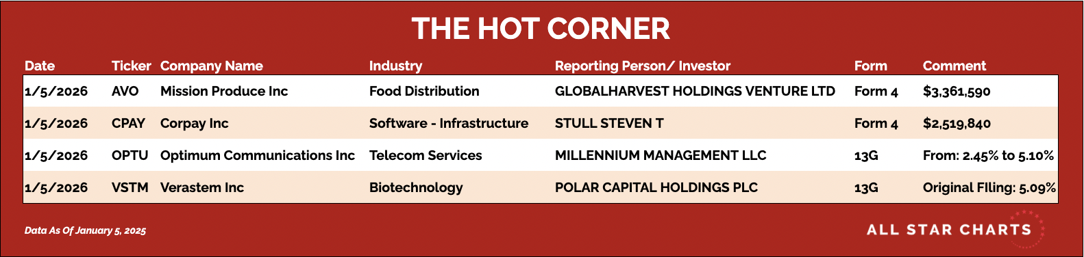 Hereβs The Hot Corner, with data from January 5, 2025: