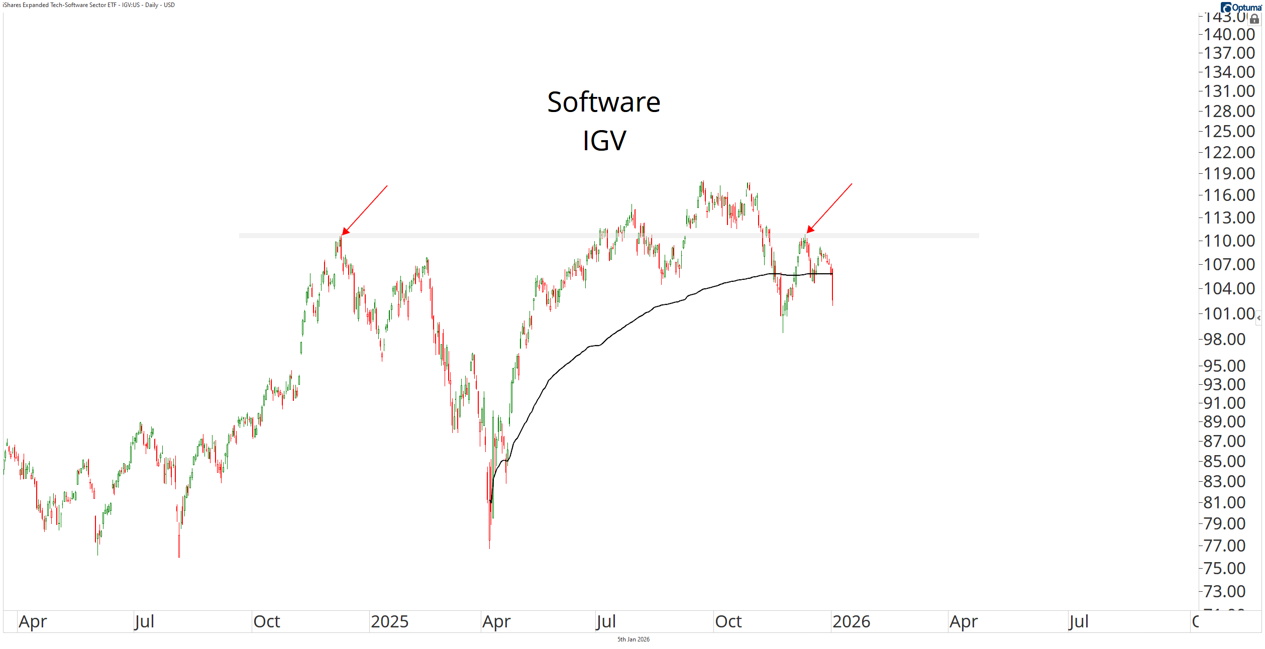 This means that the Software ETF $IGV is showing the greatest amount of relative weakness compared to all other key industries in the U.S. economy.