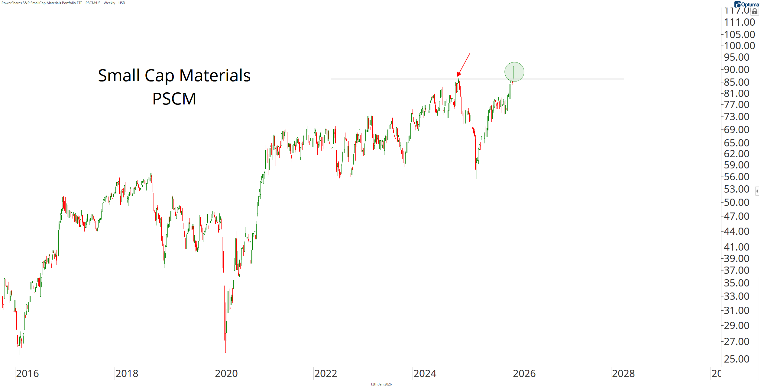 Leading the group is Small Cap Materials $PSCM, which just broke out to new all-time highs this week.