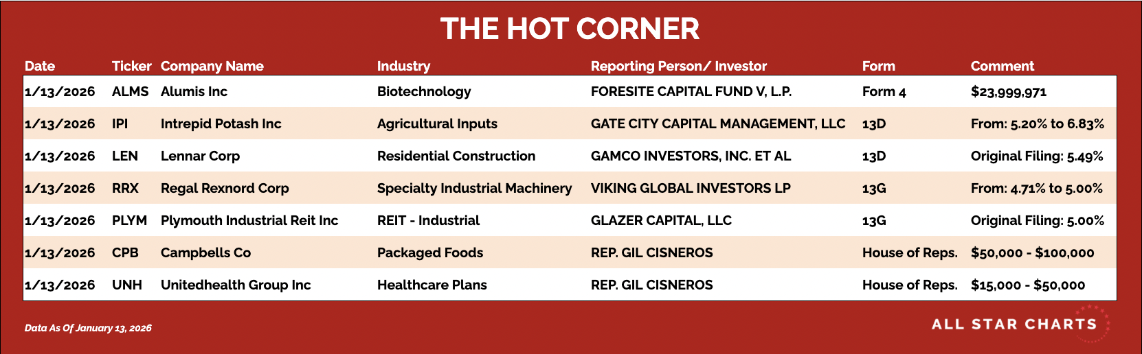 Here’s The Hot Corner, with data from January 13, 2026: