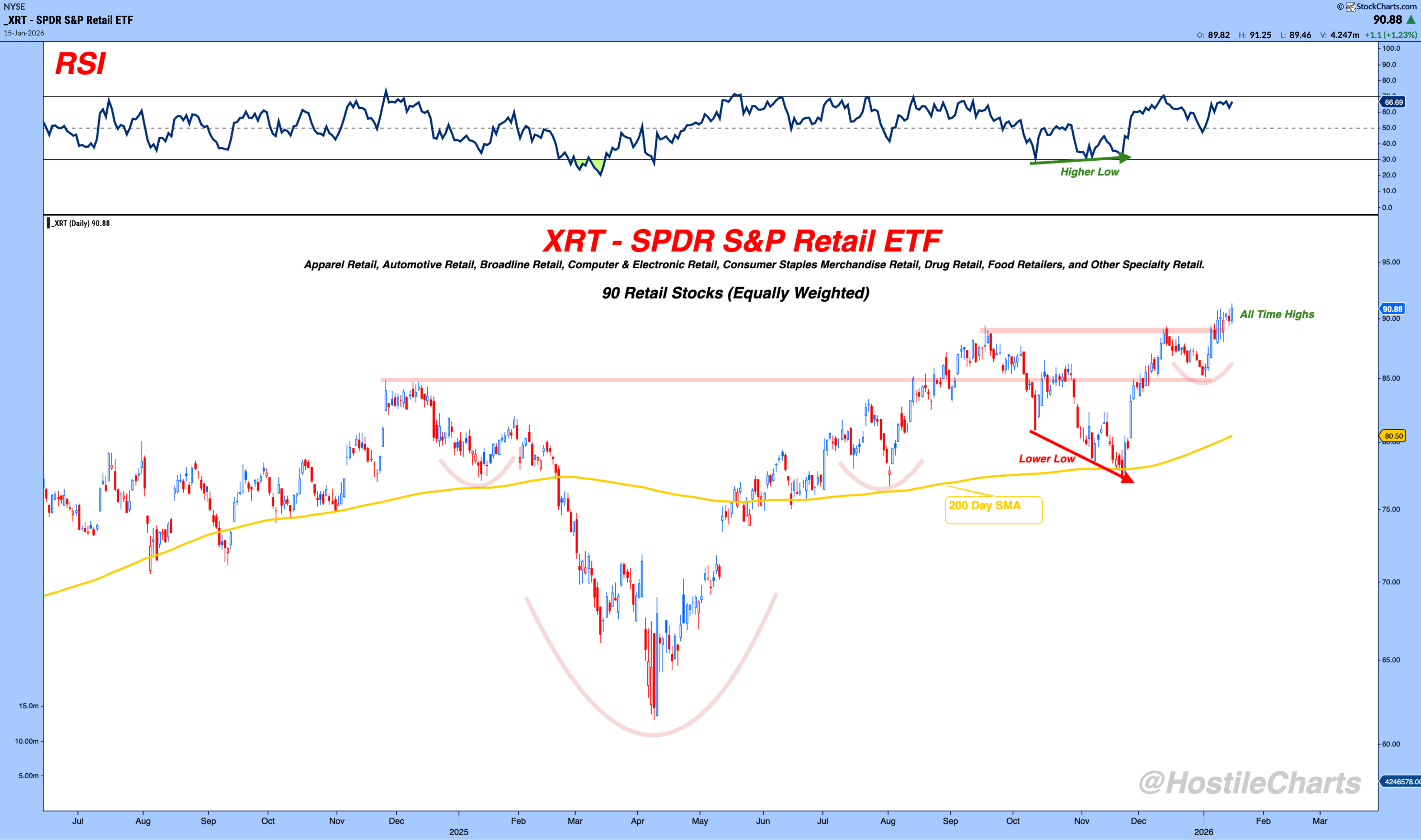 When an ETF like XRT is breaking to new highs, it’s telling you something about the aggregate health of retail and, by extension, the consumer.