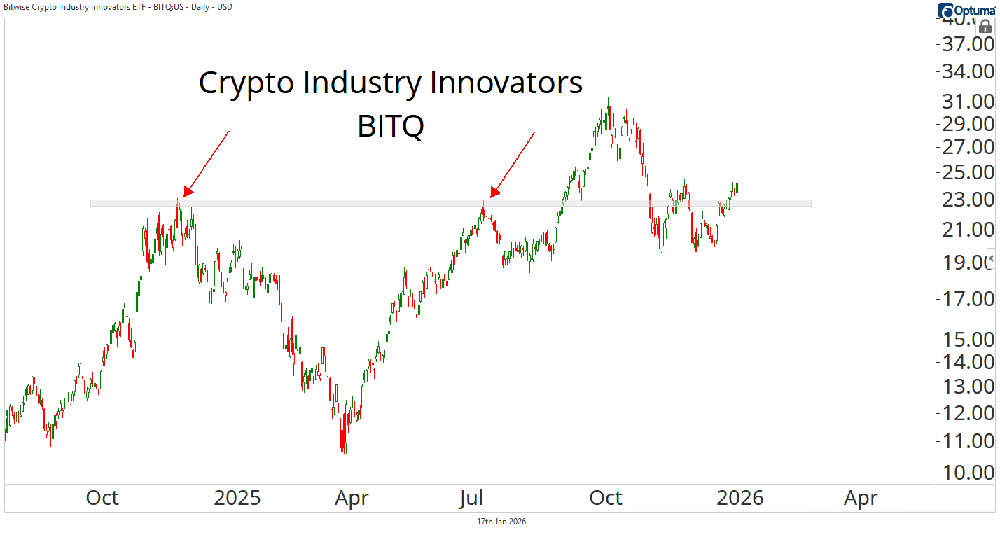 If crypto catches higher to these breakouts taking place across the stock market, this is an ETF that is well positioned.