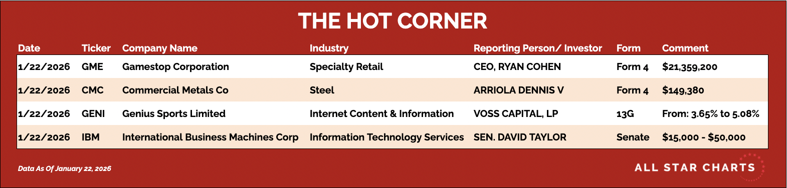Hereβs The Hot Corner, with data from January 22, 2026: