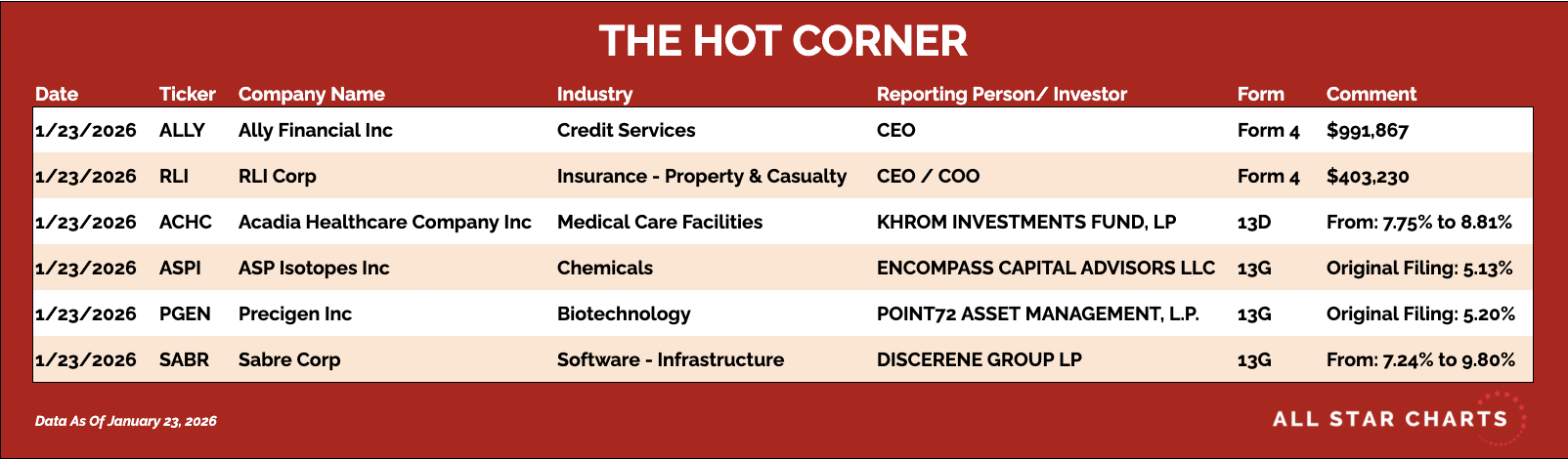 Hereβs The Hot Corner, with data from January 23, 2026: