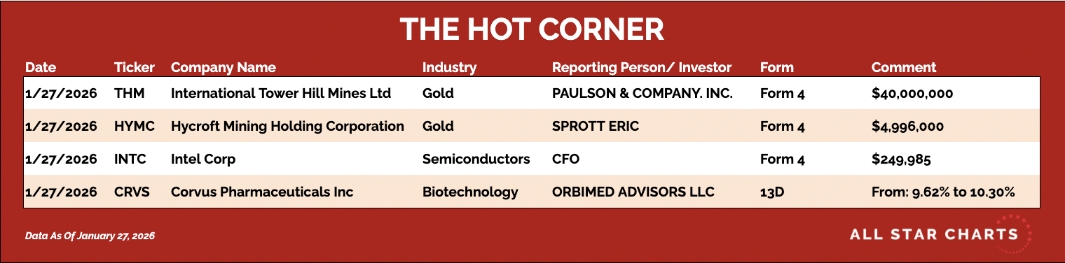 π International Tower Hill Mines $THM β Paulson & Co disclosed a $40 Million purchase via Form 4.