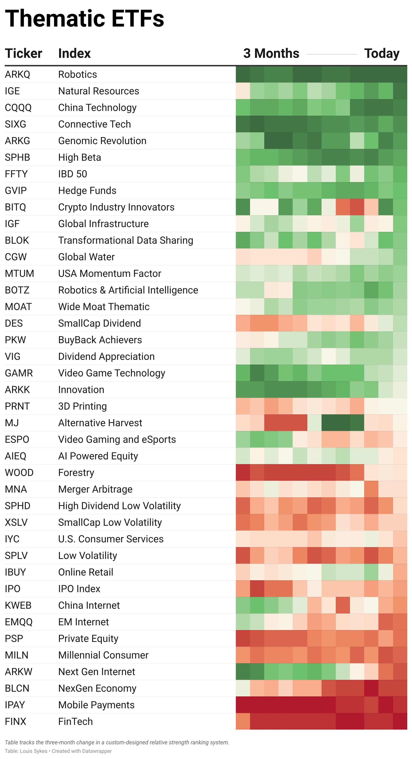 Looking to our thematic table, China Technology $CQQQ is a major stand out.