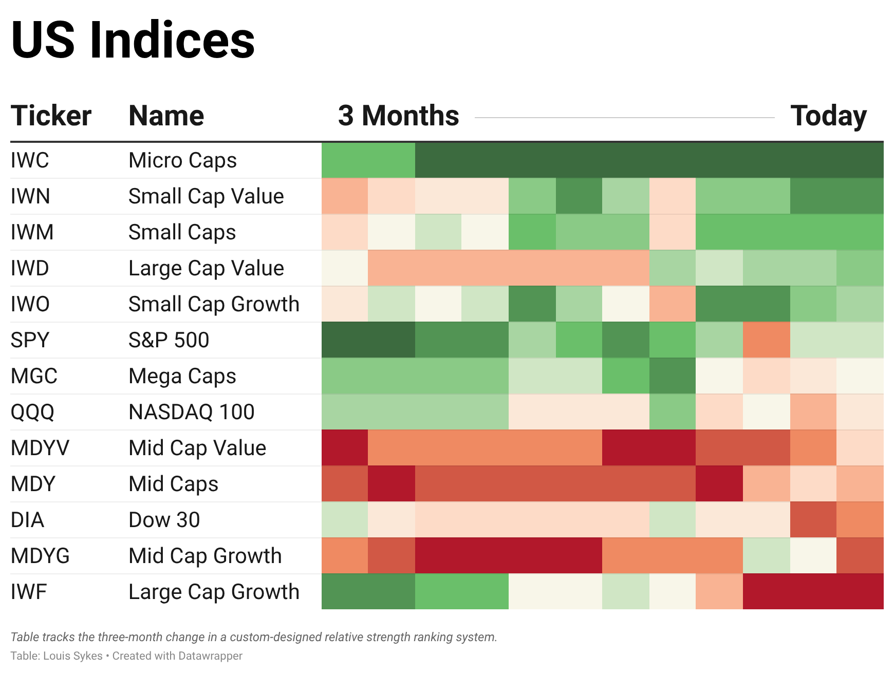 Large Cap Growth $IWF has fallen to the bottom of our U.S. Index rankings and has now been overtaken by Small Caps $IWM. Given that U.S. large caps have led this entire secular bull market, this is a notable shift in leadership.