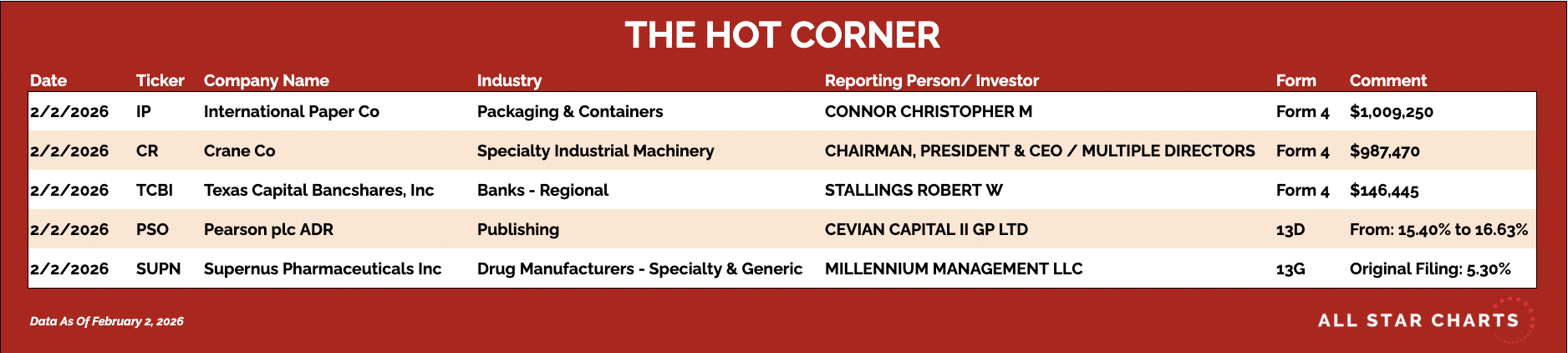 Hereβs The Hot Corner, with data from February 2, 2026: