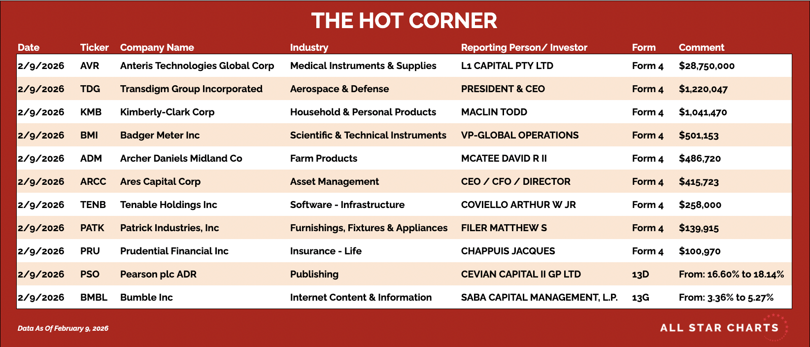 Hereβs The Hot Corner, with data from February 9, 2026: