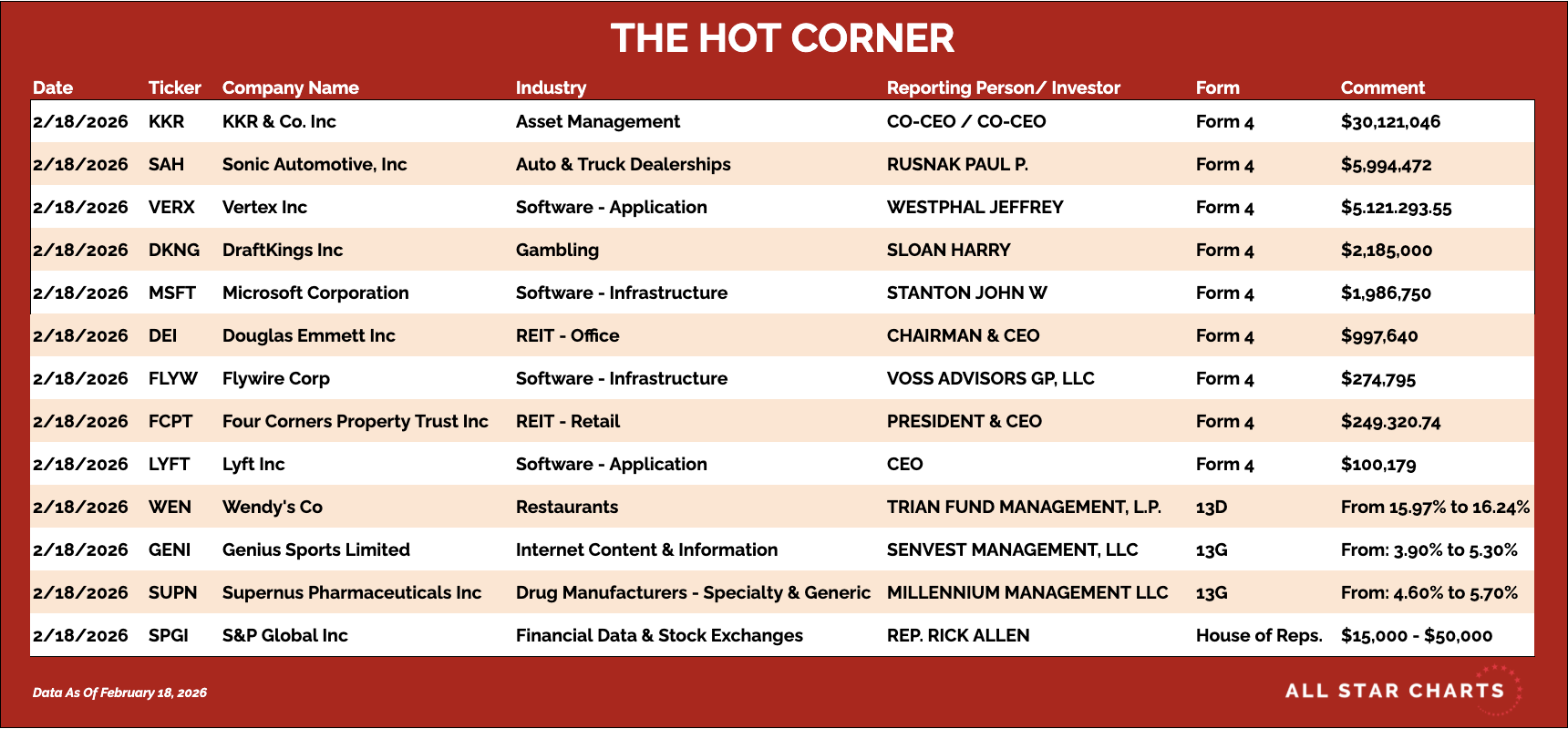 Hereβs The Hot Corner, with data from February 18, 2026: