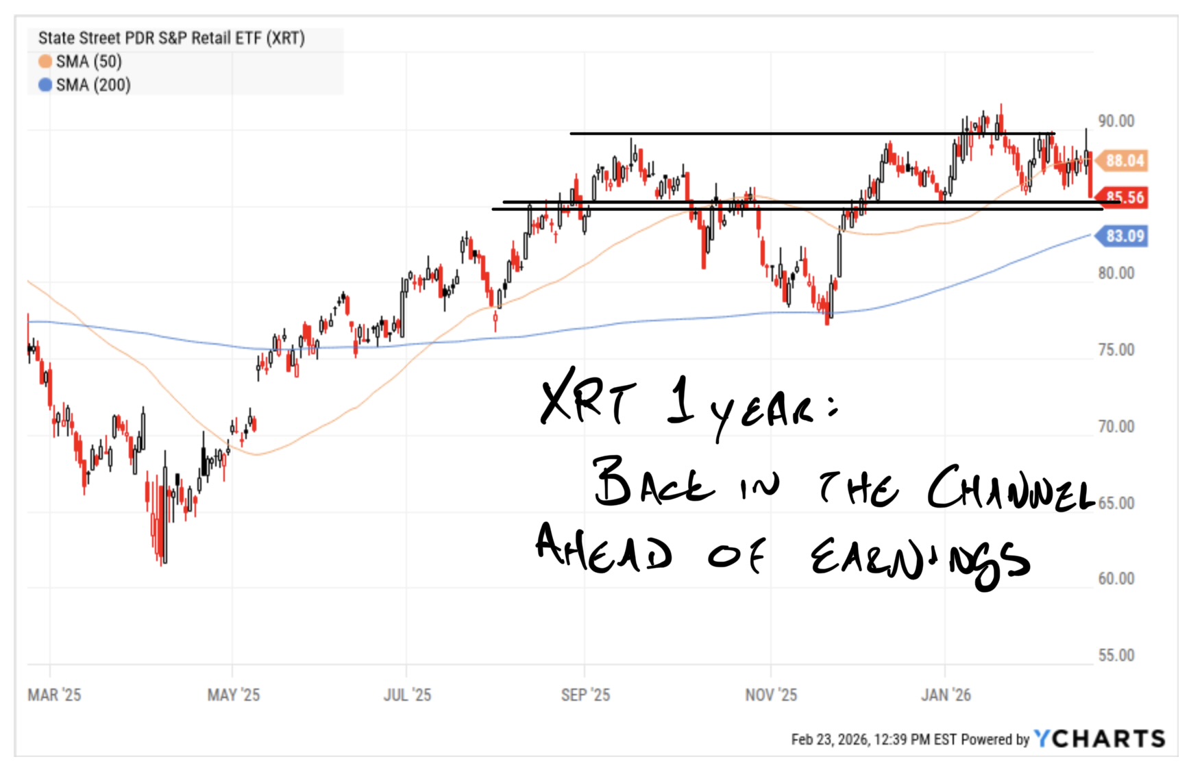 With earnings season from Home Depot, Lowe's, and TJX this week, we should have more clarity on the actual consumer impact soon. Until then, this is a "safety first" type of tape.