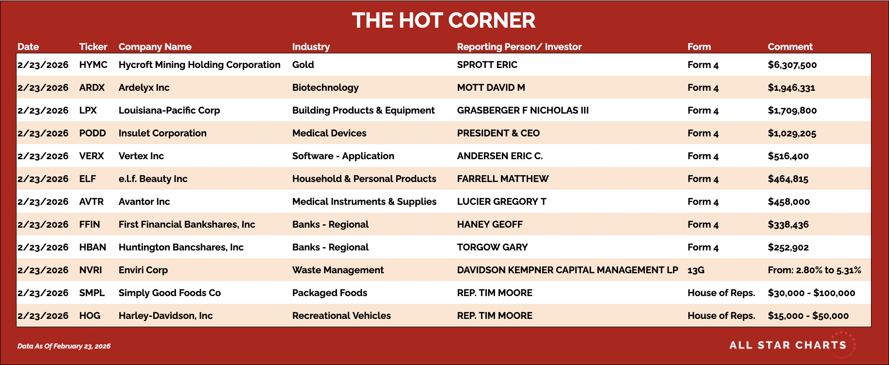Hereβs The Hot Corner, with data from February 23, 2026: