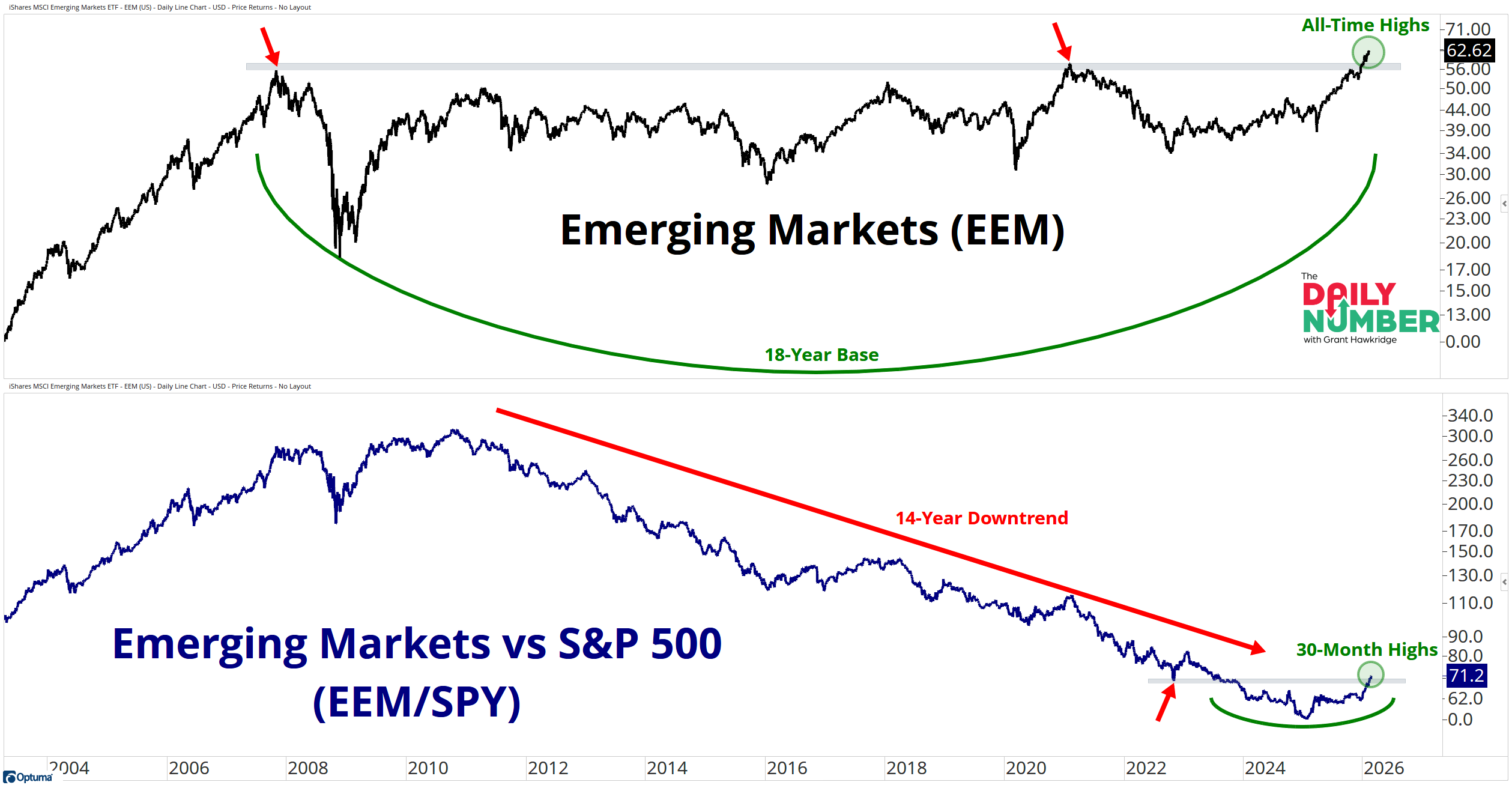 Emerging Markets broke above an 18-year ceiling and are pushing to fresh all-time highs.