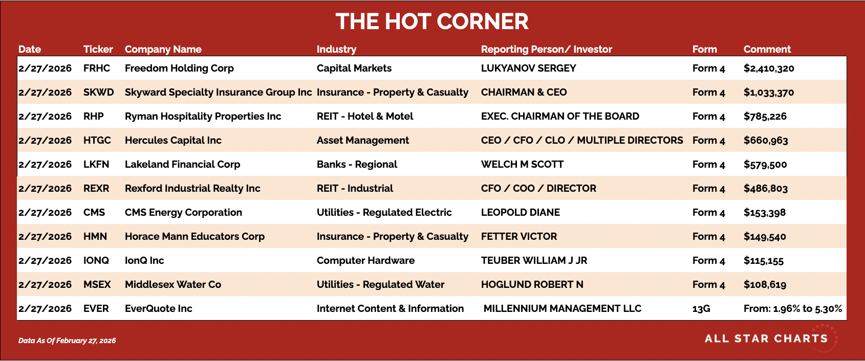 Seven-figure insider add in the P&C insurer trading near a historically important support level.