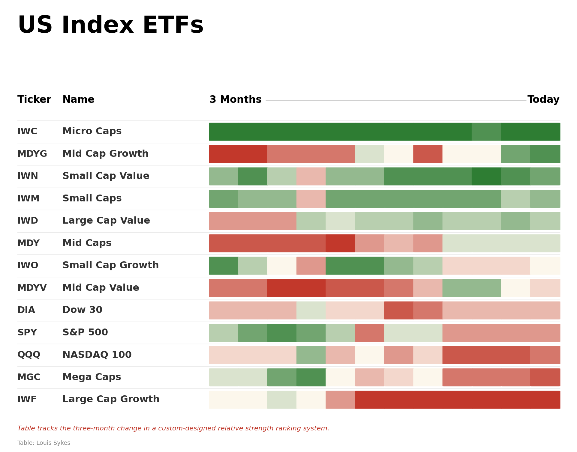 π Mid Cap Growth $MDYG is the biggest 3-month climber, up 11 spots