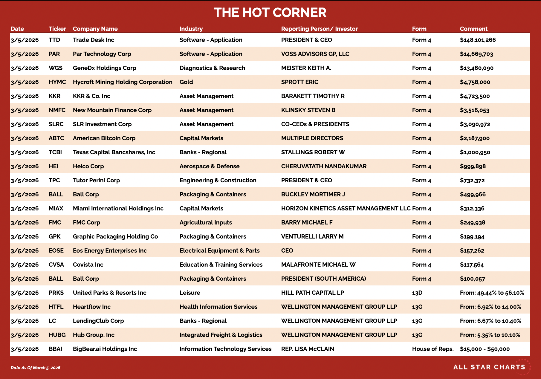 Hereβs The Hot Corner, with data from March 5, 2026:
