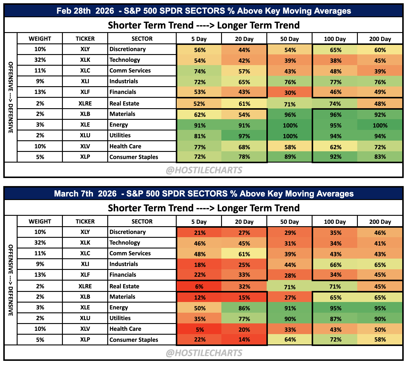 The defensive leadership didn’t completely break, but participation pulled back sharply in the short term.