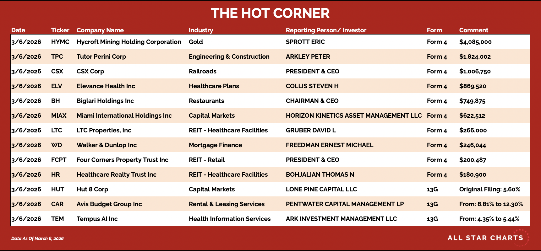 Hereβs The Hot Corner, with data from March 6, 2026: