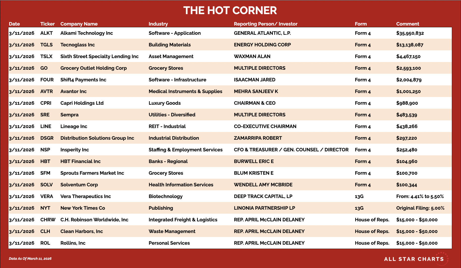 Hereβs The Hot Corner, with data from March 11, 2026:
