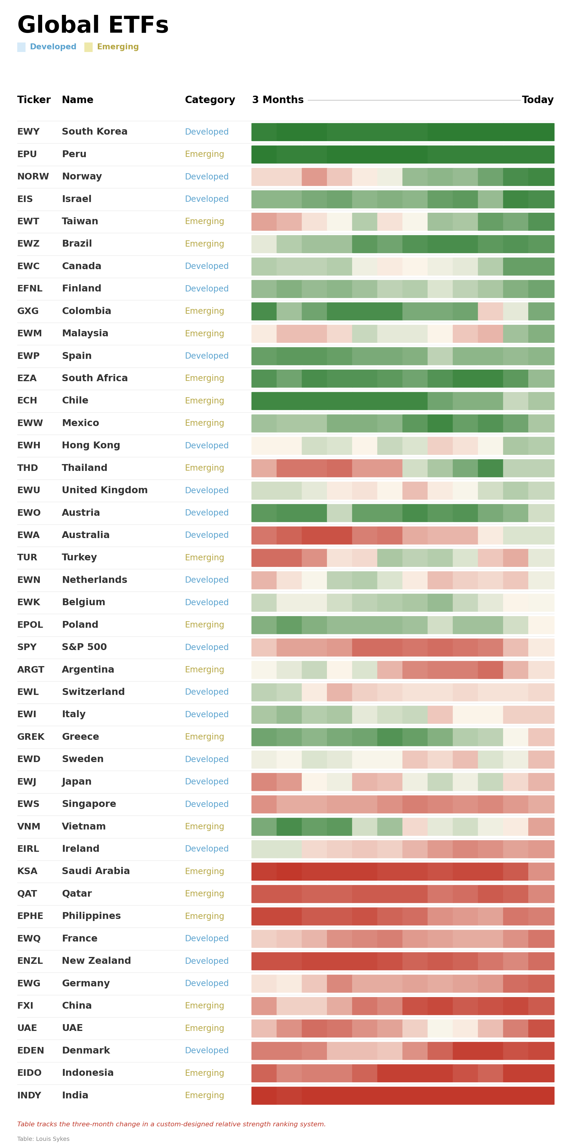 π The biggest gainer over 3 months? Taiwan $EWT, up 27 spots