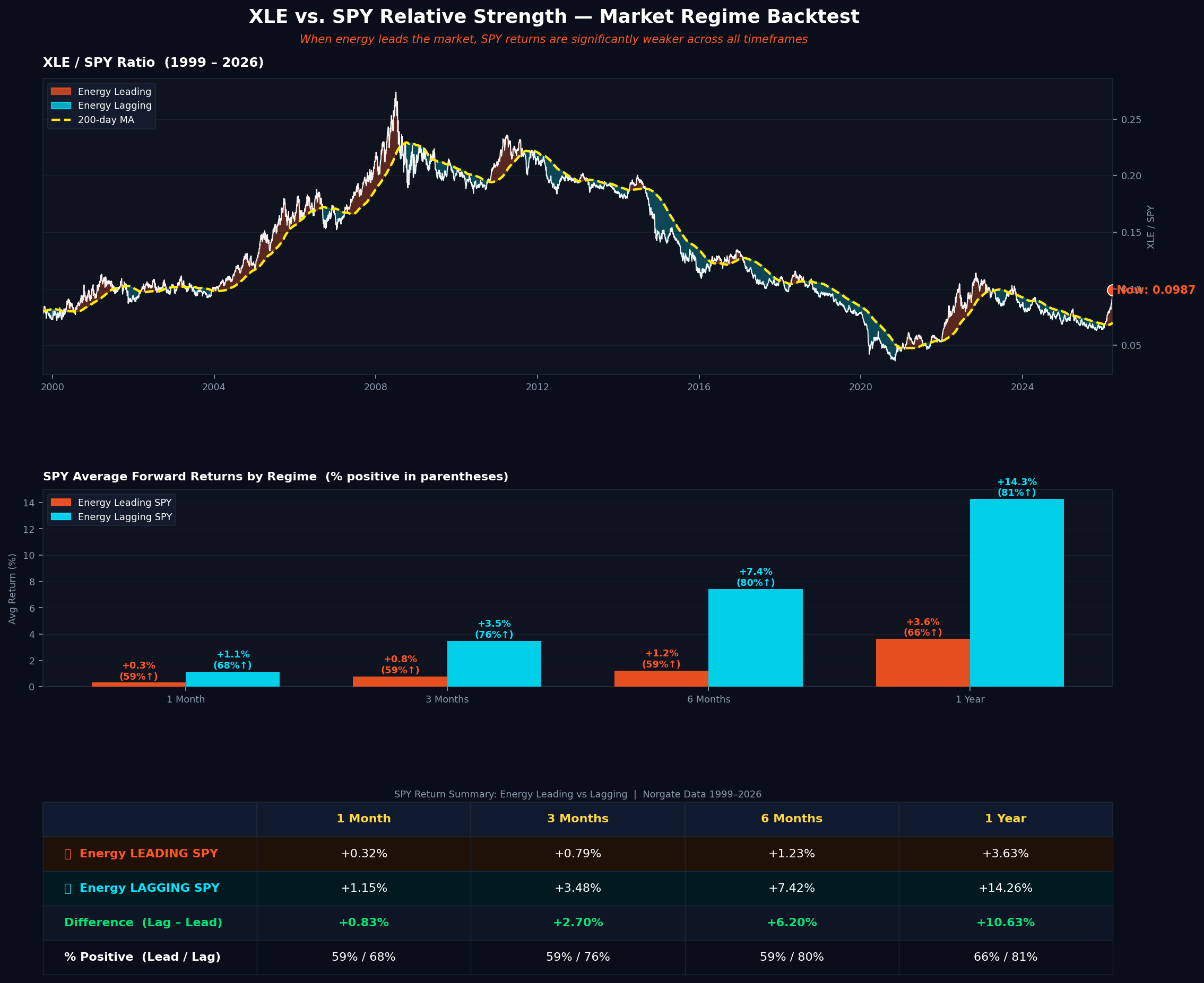 This XLE vs. SPY relationship isn’t just a “two cents” take. The data backs it.