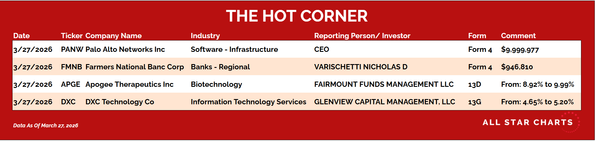 Hereโs The Hot Corner, with data from March 27, 2026: