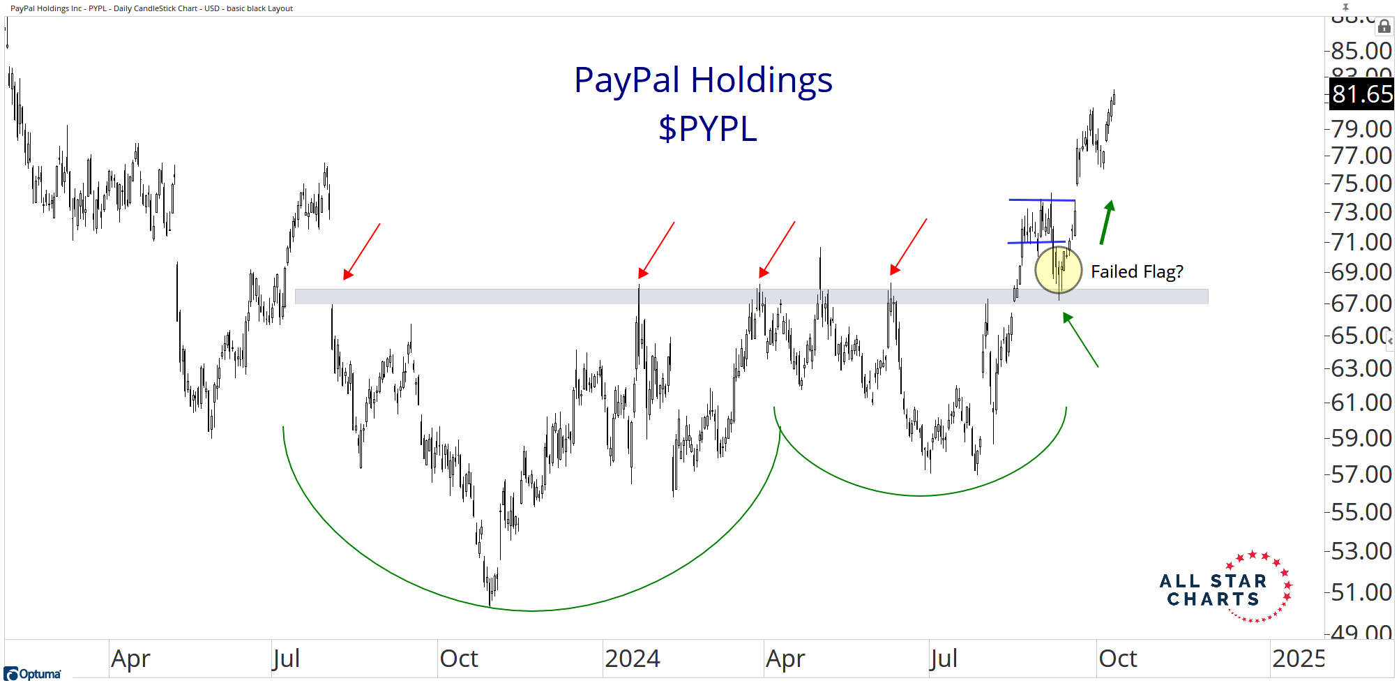Remember this failed flag? It was only a shakeout. Notice how quickly price reacted higher afterwards. That’s what follow-through should look like.