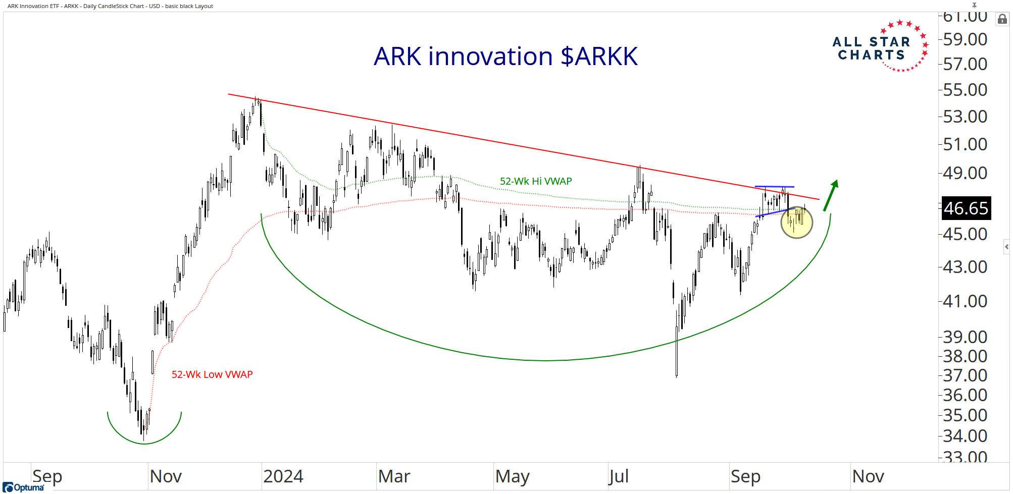 We don’t want to stop ourselves out of ARKK just before a big move.