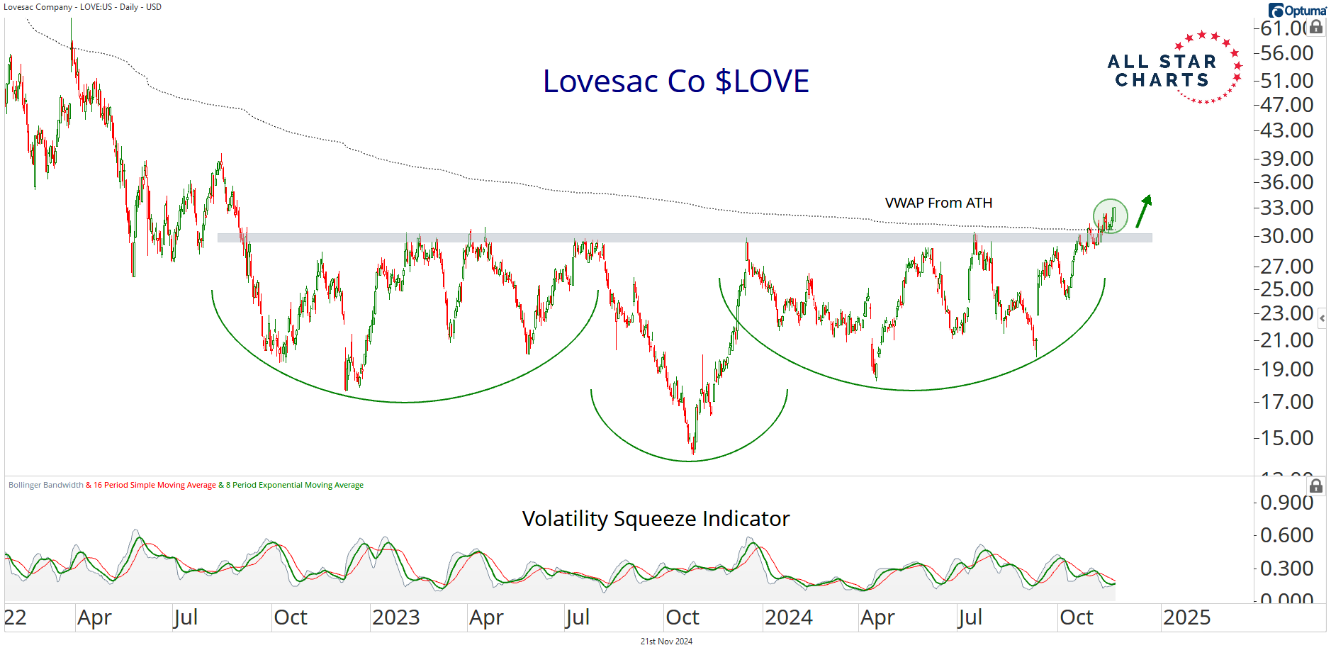 This one really reminds me of the recent setup in SQ, which has turned into a huge winner for us. I think LOVE might be the next big hit for Breakout Multiplier.