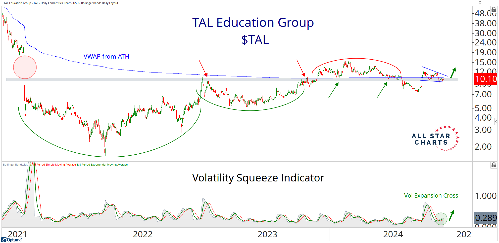 TAL has been a leader for China this cycle but has been churning in a range for the last 12 months.