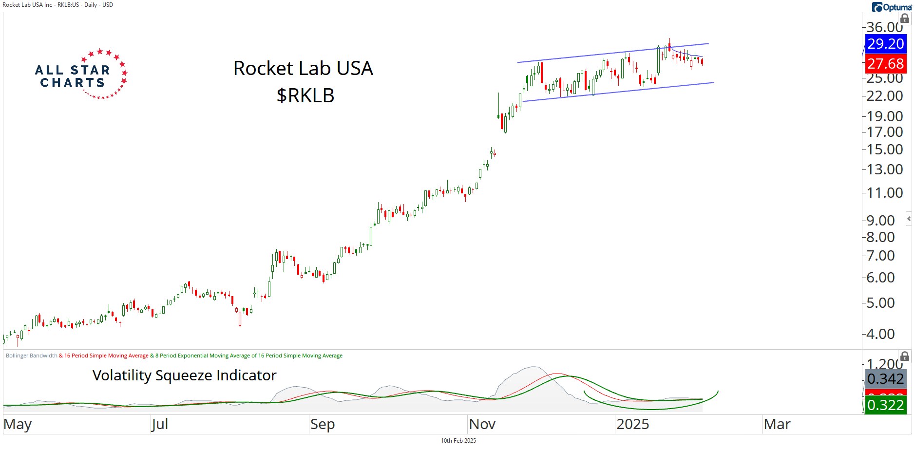After a historic take off, RKLB has been in a tight coil, and now our volatility squeeze indicator is crossing up and signaling expansion.