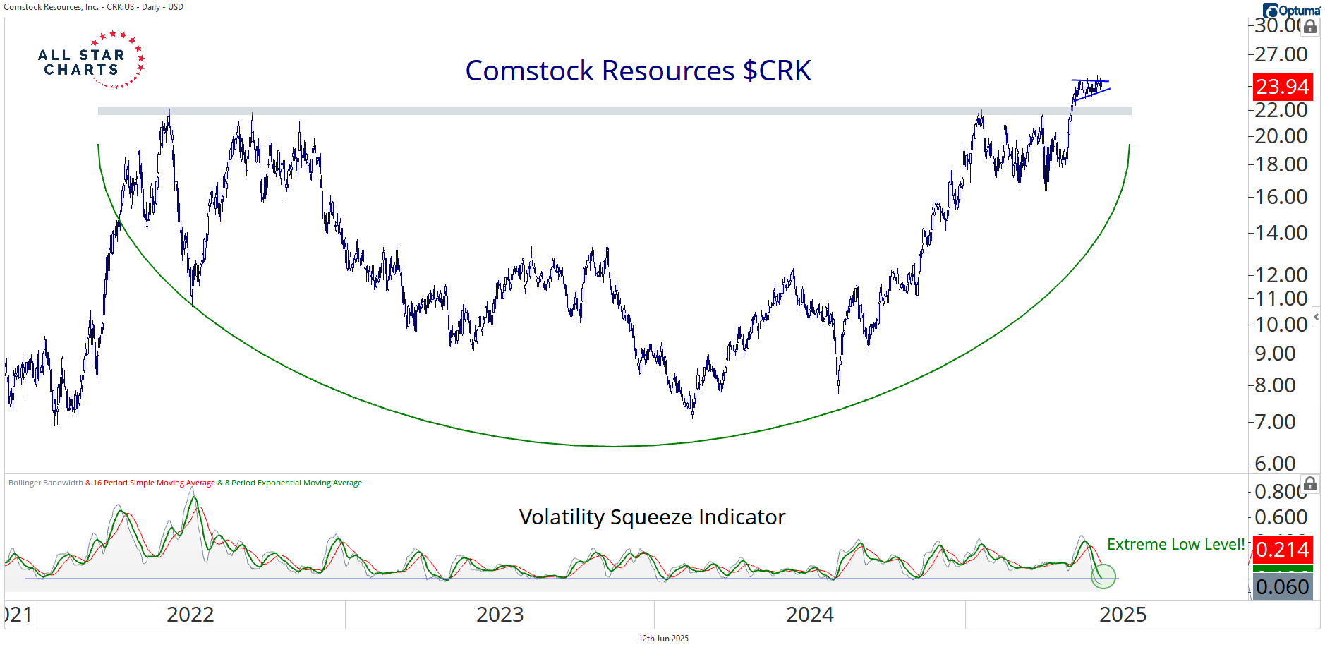 Breakout Multiplier Buying More Time in CRK By Steve Strazza June 12, 2025 This post was originally for paid members only. It has since been unlocked for informational purposes and does not constitute financial advice.If you want access to these trades in real time, sign up risk-free today!Back in mid-March, we took a shot on $CRK as a natural gas play.The stock was putting the finishing touches on a decade-long bearish-to-bullish reversal — and we nailed it.We locked in profits, sold the double, and let the rest ride with zero risk.But here’s the thing — those calls expire next week… and I’m not done with this trade.Price has been coiling in a tight range just above the breakout level.Call it a bull flag, a pennant — either way, it’s a constructive set up. And our volatility squeeze indicator is at an extreme low. That tells me a big move is brewing. So here’s what I’m doing:I’m buying the $CRK 7/18 $27 calls for approximately $0.60 - $0.70 per contract.Steve More from Breakout Multiplier Steve Strazza Betting on Charles November 7, 2025 Steve Strazza Energy Up, Rocket Down November 6, 2025 Steve Strazza Breakout Multiplier Weekly Strategy Session - November 6, 2025 November 6, 2025