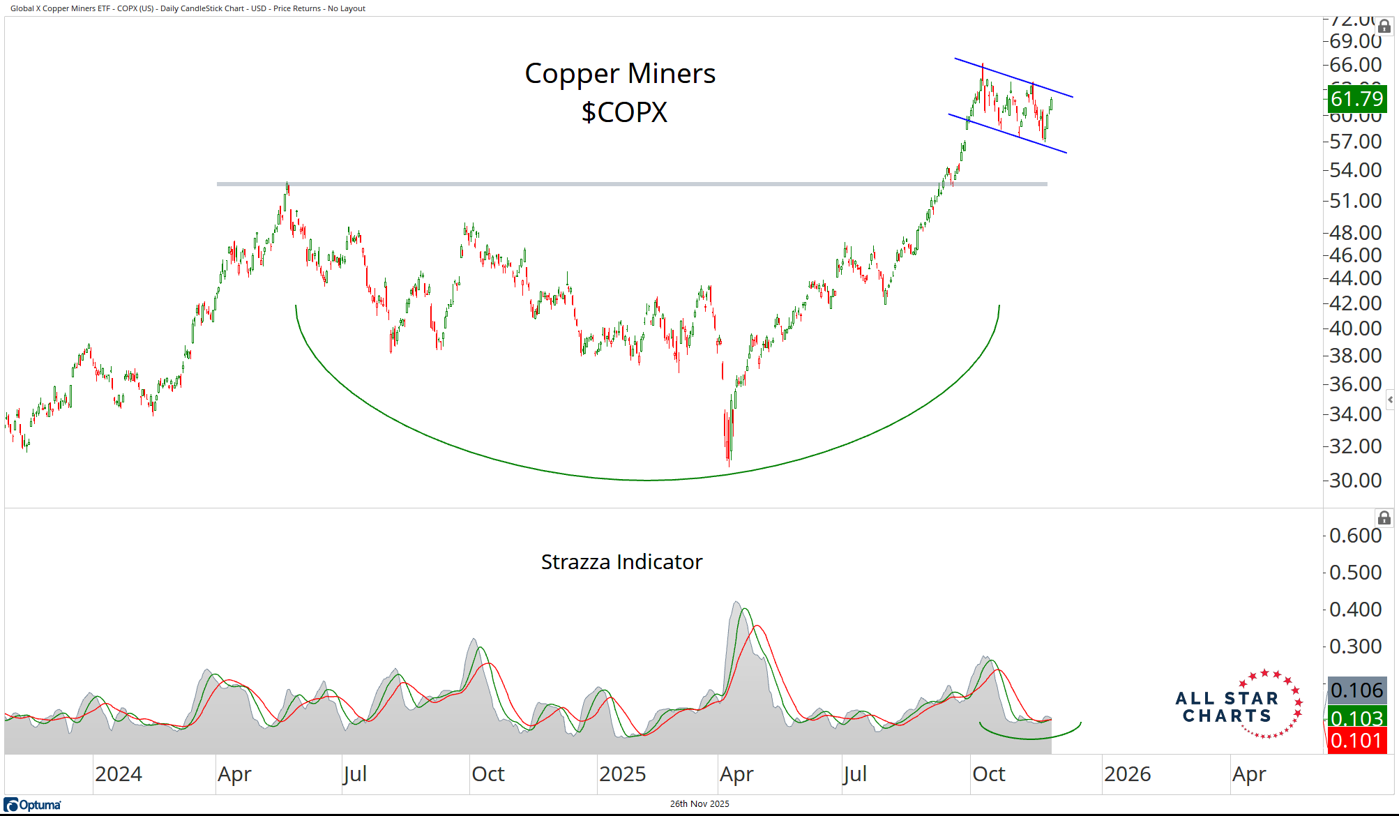 Squeeze Watch The Squeeze Watch (11/26/2025) November 26, 2025 Welcome to The Squeeze Watch.We’re very excited to present our Squeeze Engine, one of the main tools that powers the success of Breakout Multiplier.Industrial metals stocks are moving again. This has been one of the strongest areas of leadership in 2025, with many stocks up over 100%. After a well deserved corrective wave, many of our favorite themes are setting up again. Here’s today’s standout: The Copper Miners ETF $COPX is currently exhibiting a Squeeze Score of 88. COPX is sitting in a tight coil after breaking out of a year-long basing pattern. Zooming out, the longer-term pattern only adds significance to the time and location of this tight consolidation. COPX is coiling against the breakout level of a 15-year base. An upside resolution of this coil would resolve both patterns, and could lead to a much stronger rally in the months ahead. Some of the strongest stocks in the group are already breaking out. Now, the laggards are starting to catch up. If you want access to our Squeeze Engine and get today’s industrial metals trade, join Breakout Multiplier here, risk-free.- Breakout Multiplier Team More from Squeeze Watch The Squeeze Watch (11/25/2025) November 25, 2025 The Squeeze Watch (11/21/2025) November 21, 2025 The Squeeze Watch (11/20/2025) November 20, 2025 Catch Today’s Top BreakoutsSqueeze Watch delivers high-probability setups and breakout patterns across sectors — giving traders a daily advantage with data-driven opportunities. You must have JavaScript enabled to use this form. Email