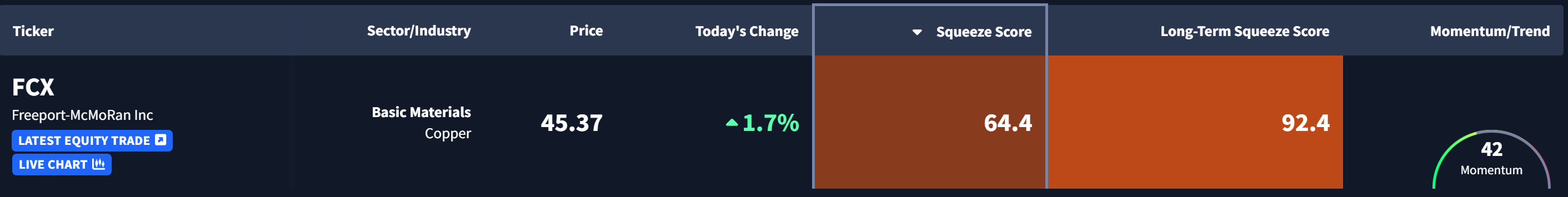 Freeport McMoRan $FCX is currently exhibiting a Long-Term Squeeze Score of 92.4.