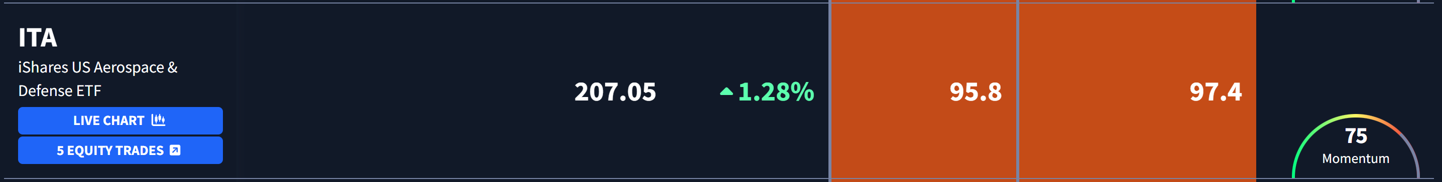US Aerospace & Defense ETF $ITA is currently exhibiting a Squeeze Score of 95.8 and an even tighter Long-Term Score of 97.4.