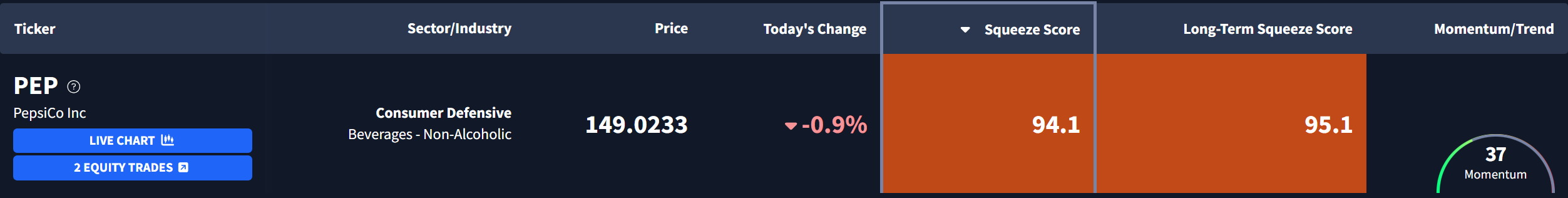 PepsiCo Inc $PEP is currently exhibiting a Squeeze Score of 94.1 and an even tighter Long-Term Score of 95.1.