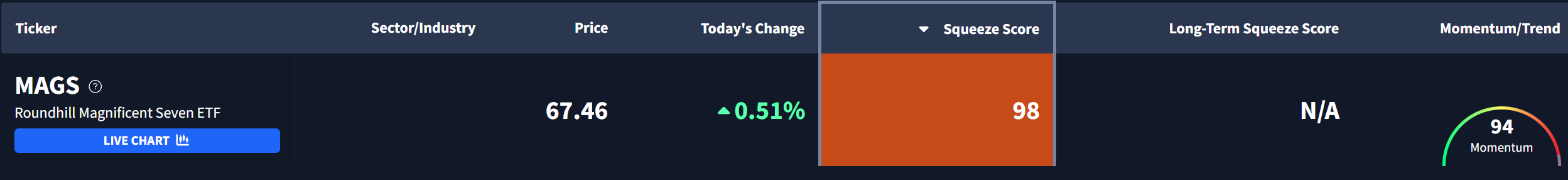 The Magnificent Seven ETF $MAGS is currently exhibiting a Squeeze Score of 98.