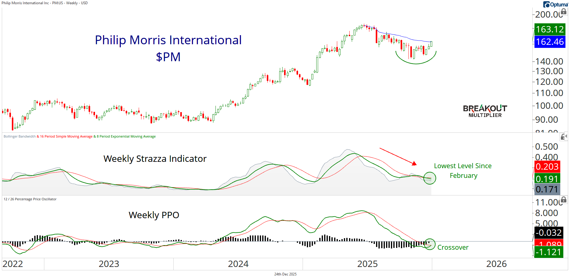 Members Only We’re Buying Smoke & Rockets By Steve Strazza December 24, 2025 This post was originally for paid members only. It has since been unlocked for informational purposes and does not constitute financial advice.Today's setups were all about multi-timeframe alignment.Philip Morris is breaking out of a tight tactical base, peaking through a critical level at the all-time high AVWAP.This short-term reversal is occurring in the context of a clear structural uptrend. After a well-deserved corrective wave, momentum reset, volatility collapsed, and now the stock looks ready for another wave higher.I bought the $PM 3/20 $175 Calls for $3.50.With momentum and volatility crossing higher on a weekly basis, going out three months makes sense in order to give this one enough time to play out.If you want access to these trades in real time, sign up risk-free today! You need to have a subscription to access this content in full. Log in or subscribe today to unlock new features and receive Member Benefits. Log in or Subscribe Breakout Multiplier Service Menu Service (Breakout Multiplier) Breakout Blog Videos Rangefinder Squeeze Watch Frequently Asked Questions Education More from Breakout Multiplier The Squeeze Watch (02/13/2026) February 13, 2026 Steve Strazza Breakout Multiplier Weekly Strategy Session - February 12, 2026 February 12, 2026 The Squeeze Watch (02/12/2026) February 12, 2026 More from Breakout Multiplier Squeeze Watch Subscribe The Open Bar Watch Now