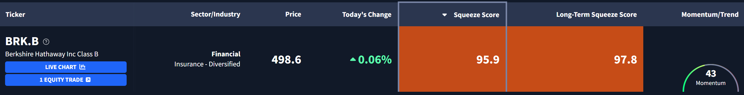 Berkshire Hathaway $BRK.B is currently exhibiting a Squeeze Score of 95.9 and an even tighter Long-Term Score of 97.8.